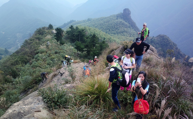 方案二:从万家乡大塔村—浙西天池。这是深度驴友的选择,一路长达三小时,山地峡谷中——慢慢地往上爬行,最后,到山顶观浙西天池、登瘌痢尖。